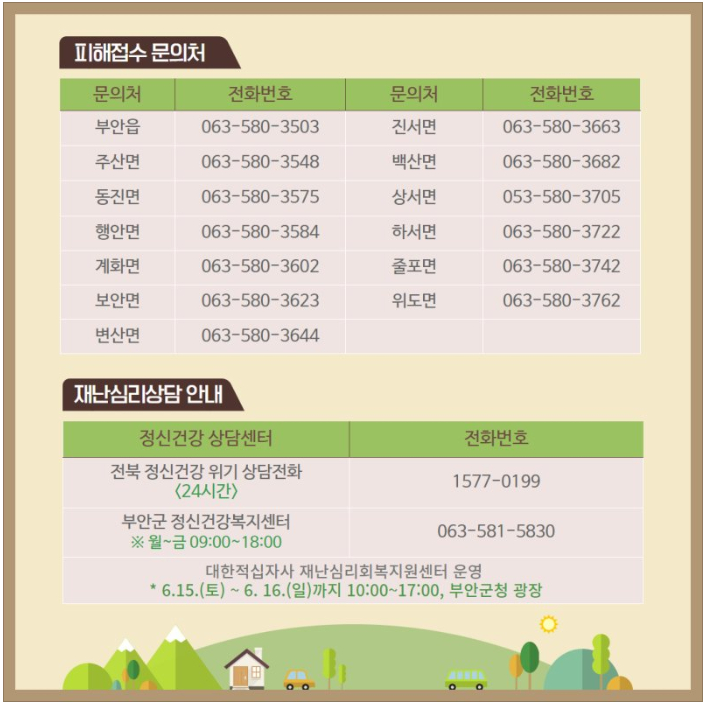 - 전북특별자치도는 재난 발생 후 7~10일 내에 피해 조사 마무리 후 현황 입력
